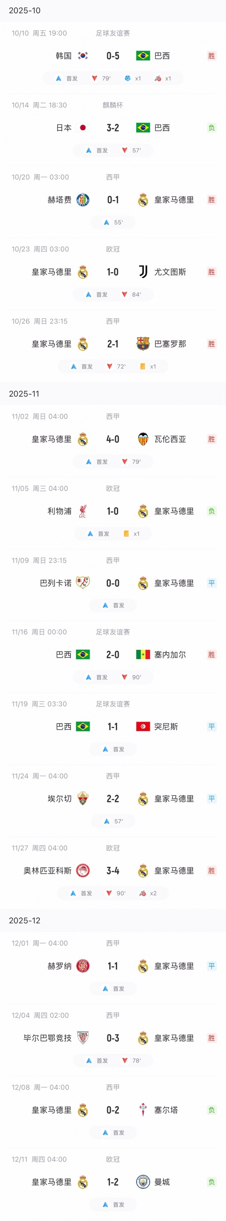 近15場各項賽事的比賽中,維尼修斯幾乎場場首發,但只交出2記助攻,同期還拿到2張黃牌,狀態欠佳。